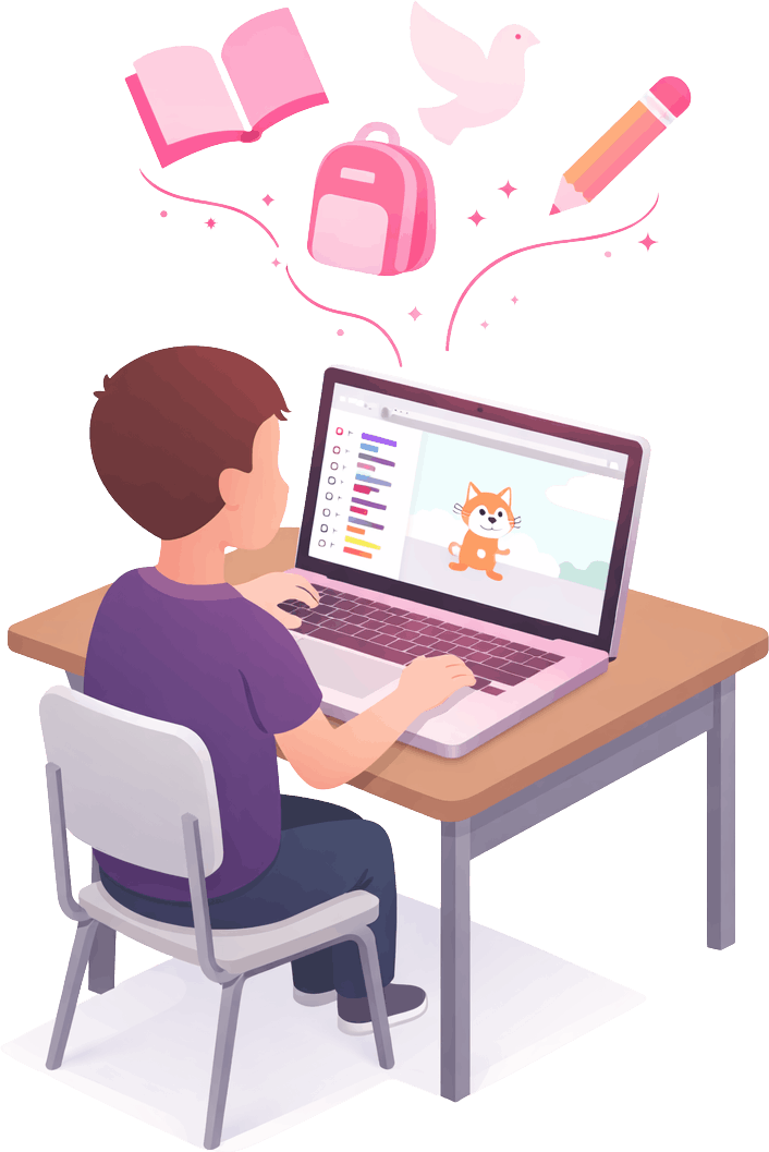 A long term online pathway helping children build tech foundations. Programs intensify with the child introducing new ideas over time.