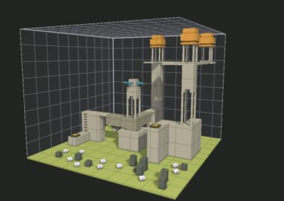 Students will design a detailed landscape, incorporating terrain features such as hills, valleys, and water bodies. They will add elements like trees and plants, learning how to use MagicaVoxel’s tools to create a realistic environment. This lesson emphasizes creativity and attention to detail.